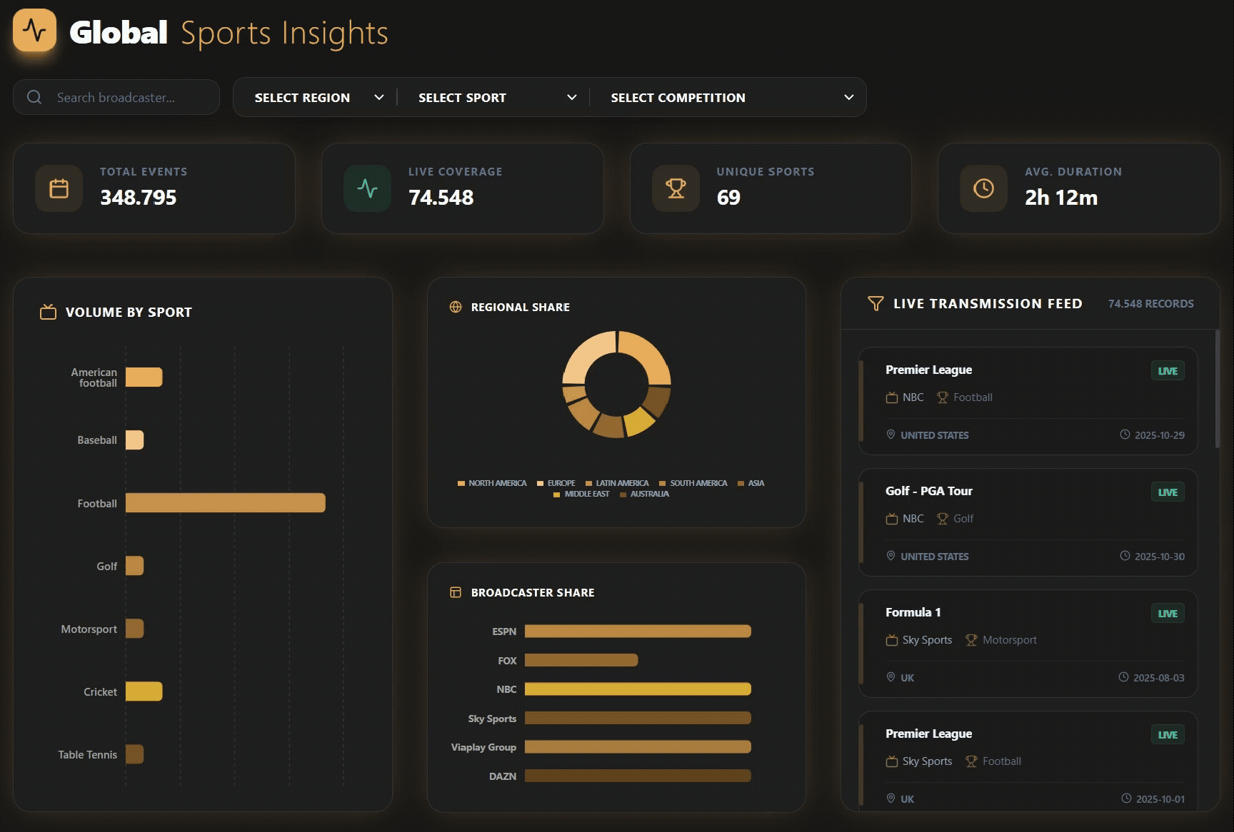 Access to unique and the most completed data base of all linear and streaming tv channels in the world airing sports events classified per sport type, tournament, genre, broadcaster, country, date, time…
