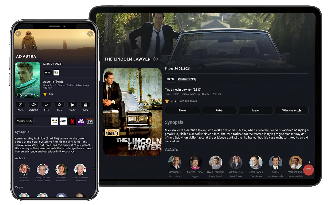 - Broadcasting images in different formats (posters, backdrop images, pictures)